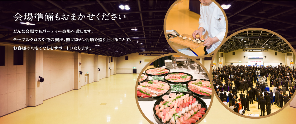 弊社スタッフが最高のパーティになるようお手伝いさせていただきます。当日の急な変更でも、最大限ご対応させていただきますので。何なりとご相談ください。