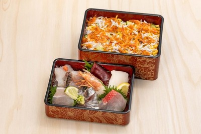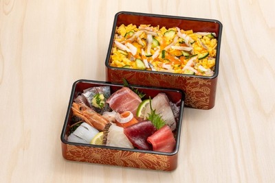 駿河湾の恵み2段重(深海魚刺し盛りとバラチラシ)