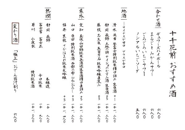 | 十千サングリア(赤ワイン+フルーツ) | 680円 |