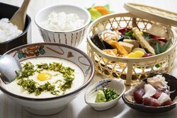 草薙橋本おぼろ豆腐 サラダ 自家製漬物 味噌汁 炊き立て羽釜飯 甘味 |