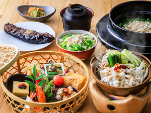 国産牛のすき焼きをはじめ冬の味覚をちりばめた会席に仕上がりました。名物の茄子田楽や自然薯など季節を感じる料理の数々をお愉しみください。