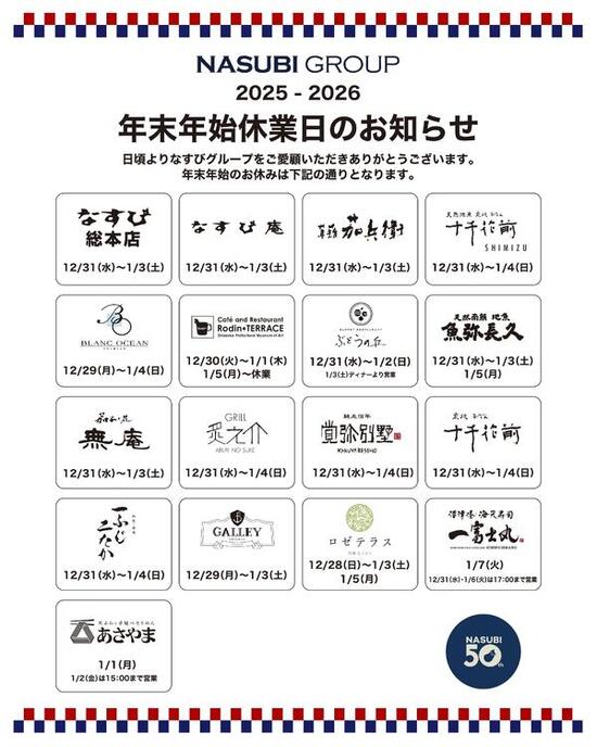 日頃より、なすびグループをご愛顧いただきありがとうございます。