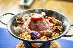 激辛トマトソースが流れ出す フジヤマ マグマ スパゲッティ |