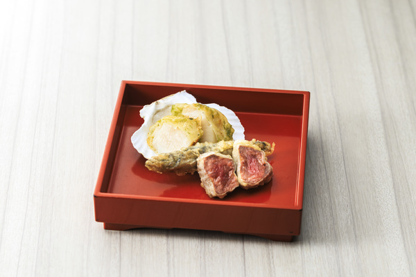 | 【天ぷら】逸品 | 北海帆立貝 メヒカリ 和牛一口ステーキ |