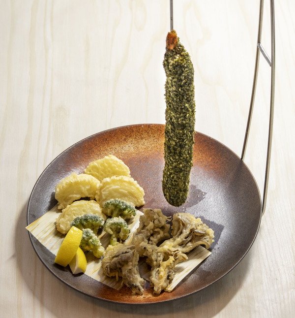 | 天ぷら盛り | ジャンボ海老のいそべ揚げ 舞茸 玉葱 さつまいも |