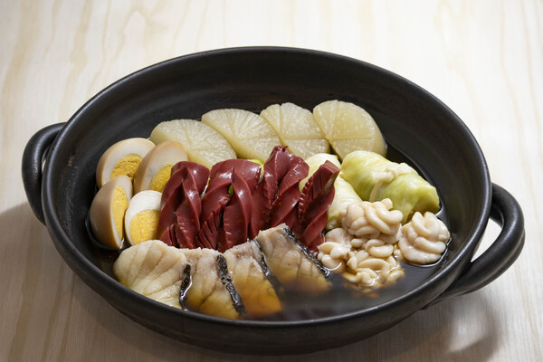 | 名物 | 極上出汁おでん盛合せ 真鱈・白子・ロールキャベツ・大根など |