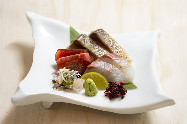 | お造り | 寒鰤三保松原焼きと南鮪、地魚の三点盛り |