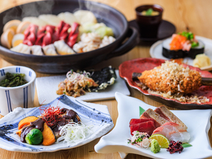 【名物】極上おでん、寒鰤の三保松原焼き、地魚盛り合わせ、十千焼き、黒はんぺんフライなど…名物料理と冬食材を使用した会席です。