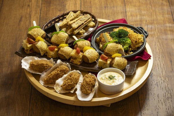 | 逸品 | ブッチャーズプラッター ・若鶏の香草パン粉焼き ・蓮根つくねのチーズ焼き ・スパニッシュオムレツ ・カキフライ ・ごぼうの唐揚げ |