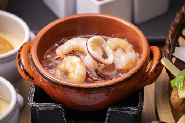 | 小鍋 | 函館産スルメイカと海老のアヒージョ |